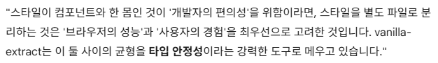 .css.ts로 분리하면 빌드 타임에 리액트 코드와 스타일 코드를 독립적으로 처리할 수 있어 최적화가 쉬워진다고 한다.