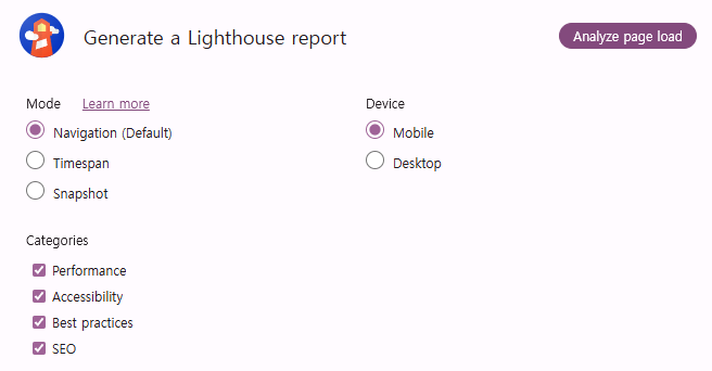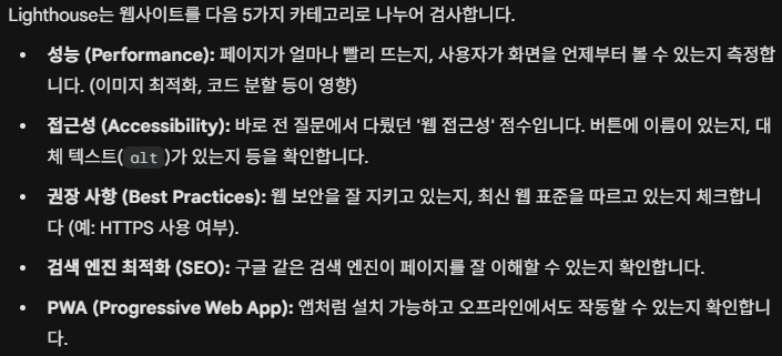 개발한 페이지가 웹 접근성을 잘 지키고 있는지 파악하기 위해, 크롬의 Lighthouse를 이용할 수 있다.