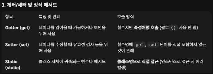 게터/세터 및 정적 메서드