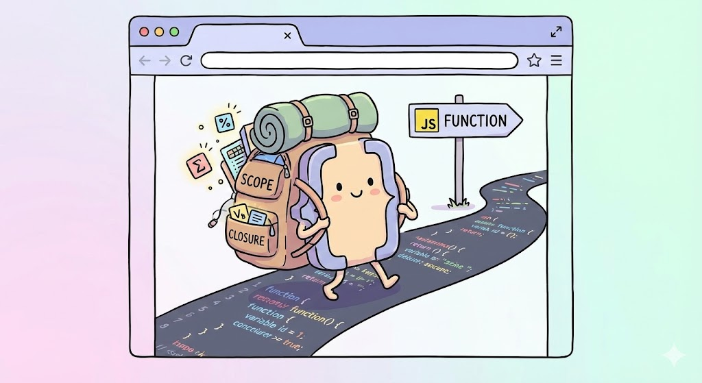 클로저는 **함수 + 렉시컬 스코프(배낭)**의 조합입니다. 함수가 선언된 위치를 기억하기 때문에, 부모 함수가 죽어도 그 자식은 부모의 유산(변수)을 계속 쓸 수 있는 마법 같은 기능이죠.